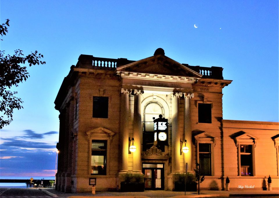 The historic First National Bank building in Menominee was built in the early days of the city's prosperity. It has been accurately restored by a local business man and is in daily use as offices for his family businesses.